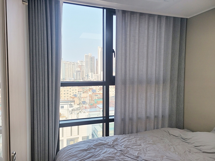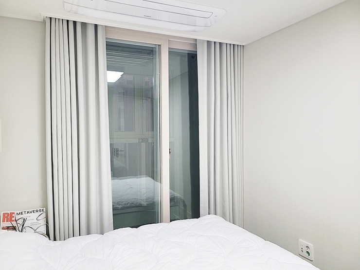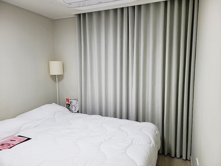 일반 커튼보다 두껍고, 빛을 흡수하거나