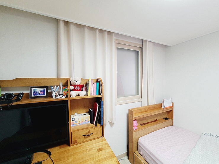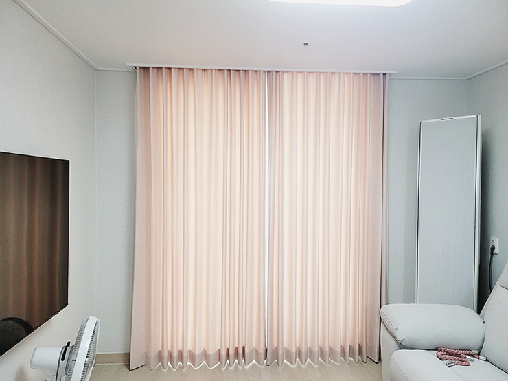천장형 레일 설치와 창틀 내장형 커튼 등