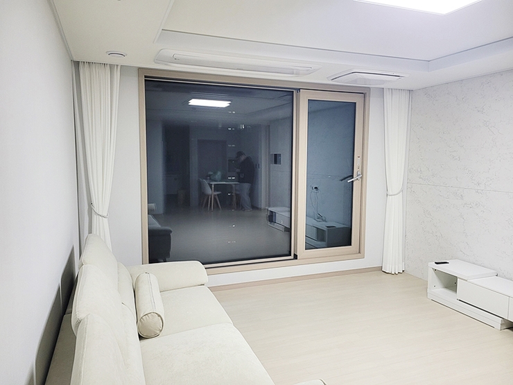 거실 큰 창에 쉬폰 커튼을 사용하면