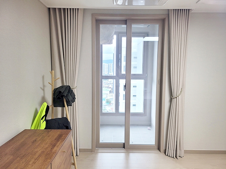 안방에는 패턴 무지커튼으로 실용성있게